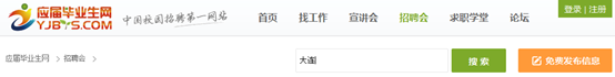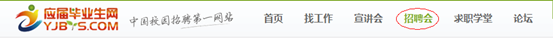 第一步:進(jìn)入應(yīng)屆畢業(yè)生網(wǎng)(m.hongweilanqiujulebu.com )首頁,在網(wǎng)站首頁頂部導(dǎo)航欄點(diǎn)擊“招聘會(huì)”,即可進(jìn)入“YJBYS招聘會(huì)查詢系統(tǒng)”,你也可以輸入 直接進(jìn)入該系統(tǒng);