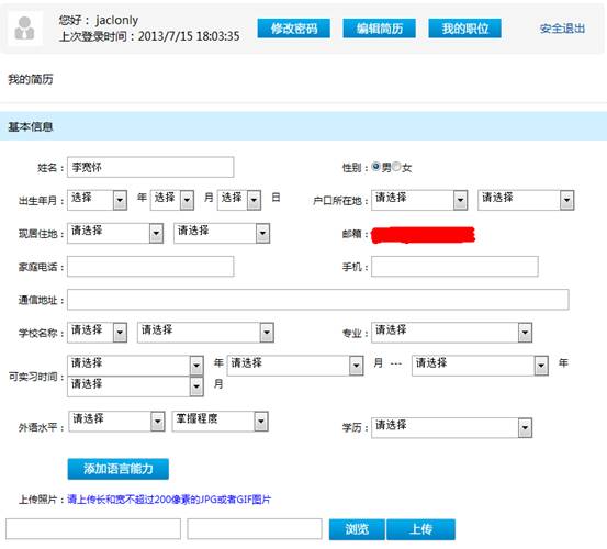 注1:填寫簡歷時,應(yīng)盡量填完所有選項,最好能上傳自己的照片及電子版簡歷;
