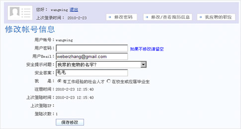 系統(tǒng)不允許一人多次注冊投遞簡歷。系統(tǒng)將對用戶注冊進行驗證,如果出現(xiàn)雷同,不允許第二次注冊投遞簡歷。