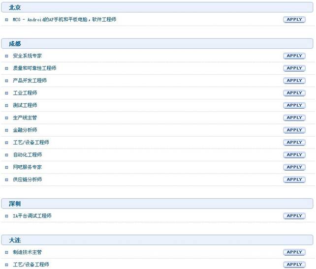 第一:登錄英特爾官網(wǎng)或是應(yīng)屆畢業(yè)生YJBYS校園招聘,點(diǎn)擊招聘職位,挑選自己希望申請(qǐng)的職位: