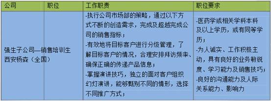 總的來說,強生校園面向校園只招聘銷售管理培訓生。不同的子公司有著不同的要求。招聘的人才需要有醫(yī)藥學或相關學科本科及以上學歷,或有同等學歷。為人誠實、工作積極主動,具有良好的業(yè)務敏銳度、學習能力及銷售技巧;良好的溝通能力及人際關系能力、影響力被西安楊森特別看重。強生校招的主要地點在北京、廣州、深圳、哈爾濱、武漢、長沙、濟南、西安、上海、成都、昆明、杭州等城市舉辦。
