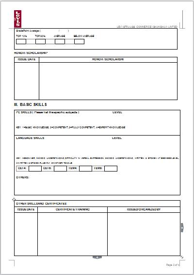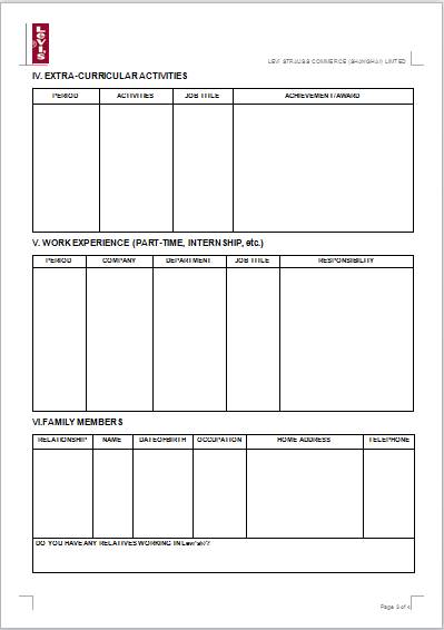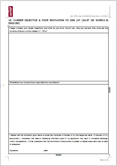 請下載填寫李維斯官方求職申請表: