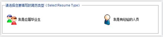 第六步:點擊“我的簡歷”,會彈出“我是應(yīng)屆畢業(yè)生”和“我是有經(jīng)驗的人員”兩種簡歷類型供你選擇,然后根據(jù)自己的情況選擇。