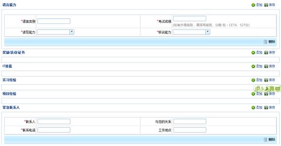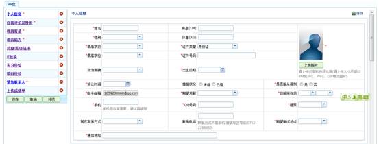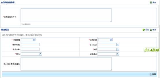 第七步:進入以下簡歷填寫界面,然后根據(jù)要求填寫相關(guān)信息,記住,填寫好的信息一定要點擊“保存”,以避免信息丟失,又要從新操作,會很浪費時間。