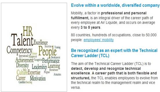 為使技術(shù)專家在其專業(yè)領(lǐng)域獲得充分的成功,液化空氣集團為其研究人員、工程師、技術(shù)人員和專家建立了一套正規(guī)的認可體系。集團技術(shù)職業(yè)發(fā)展階梯(TCL)使液空可以像選拔管理人才那樣選拔技術(shù)專家,其專長之后將得到整個集團的關(guān)注。這些專家在專業(yè)知識的資本化、傳遞和傳播方面發(fā)揮了關(guān)鍵作用。