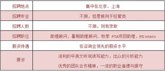 招聘職位:暑期助理顧問實(shí)習(xí)生工作地點(diǎn):北京、上海及香港
