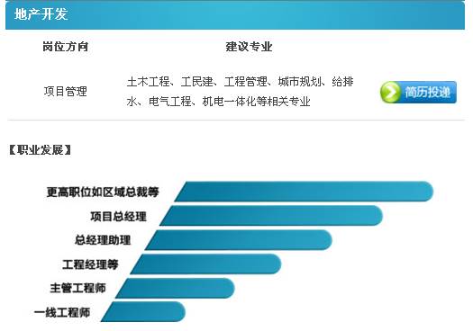 2、如選擇“地產(chǎn)開發(fā)”,則點擊“地產(chǎn)開發(fā)”,查看部門招聘的崗位,如下圖所視。