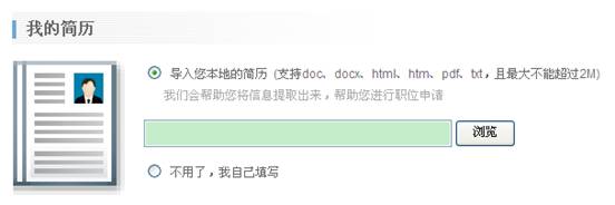 上傳簡歷,也可以選擇自己填寫