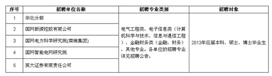 2013年國家電網(wǎng)公司部分直屬單位高校畢業(yè)生招聘崗位: