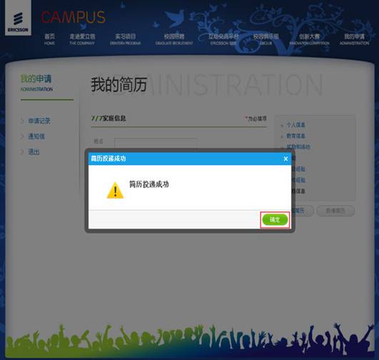 → 彈出簡歷投遞成功提示,點(diǎn)擊“確定”按鈕。