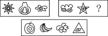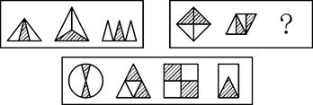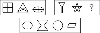 第二種題型:圖形推理。要求考生從四個(gè)備選答案中選擇最符合規(guī)律的一個(gè),替代題干中的問(wèn)號(hào),使該組圖形呈現(xiàn)出與前一組圖形一定的規(guī)律性。