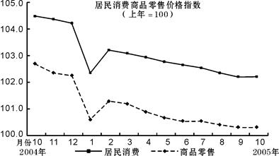 2004-2005年居民消費(fèi)商品零售價(jià)格指數(shù)
