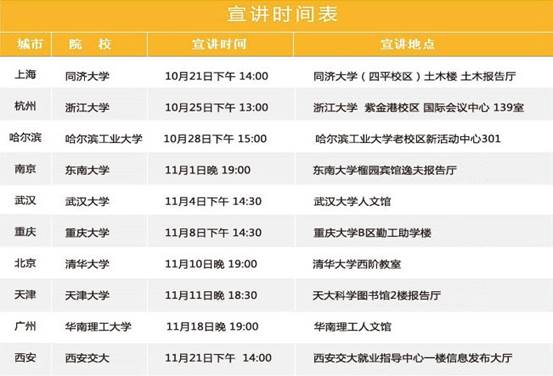 宣講會(huì)查詢(xún)系統(tǒng)入口:,本系統(tǒng)為您提供目前已發(fā)布宣講會(huì)信息的所有名企的宣講會(huì)舉辦時(shí)間、地點(diǎn)。