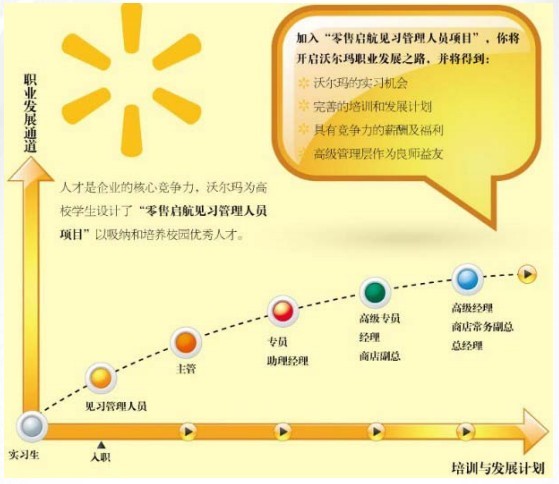 3.內(nèi)部提升制。它表明了對(duì)保留與發(fā)展公司已經(jīng)具有的人才的側(cè)重強(qiáng)調(diào),而不再是公司以前的不斷招聘的用人特點(diǎn)。公司期望最大限度發(fā)揮員工的潛能并創(chuàng)造機(jī)會(huì)使其工作內(nèi)容日益豐富和擴(kuò)大,盡可能鼓勵(lì)和實(shí)踐從內(nèi)部提升管理人員。對(duì)于每一位員工的表現(xiàn),人力資源部門會(huì)定期進(jìn)行書面評(píng)估,并與員工進(jìn)行面談,存入個(gè)人檔案。沃爾瑪對(duì)員工的評(píng)估分為試用期評(píng)估、周年評(píng)估、升職評(píng)估等。評(píng)估內(nèi)容包括這位同事的工作態(tài)度、積極性、主動(dòng)性、工作效率、專業(yè)知識(shí)、有何長(zhǎng)處以及需要改進(jìn)之處等。這些將作為員工日后獲得晉職提升的重要依據(jù)。及時(shí)發(fā)現(xiàn)人才,并積極創(chuàng)造環(huán)境以最大限度發(fā)揮人才潛力。