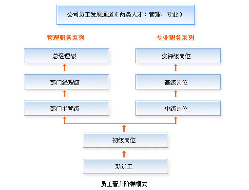 雙階梯職業(yè)發(fā)展通道幫助有管理能力和管理潛質(zhì)的員工順利成長(zhǎng)為管理者,同時(shí)也使有技術(shù)特長(zhǎng)的員工潛心鉆研技術(shù),順利成長(zhǎng)為某個(gè)專業(yè)領(lǐng)域的專家,這充分體現(xiàn)了公司以人為本,幫助員工成功的管理思想,為員工的職業(yè)成長(zhǎng)提供了沒有天花板,沒有圍墻的發(fā)展平臺(tái)。