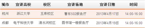 | 成都 | 四川大學(xué) | 望江校區(qū) | 就業(yè)指導(dǎo)中心201 | 2012年9月15日 | 15:00-17:00 |