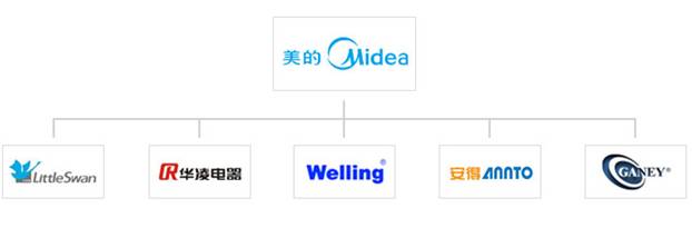 旗下品牌:美的、小天鵝、威靈、華凌等十余個品牌