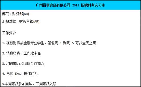 近三年里,百事校園招聘的職位主要以市場、銷售類職位為主,招聘的數(shù)量不定, 但從多年的招聘情況可以分析出來,由于其拓展市場的需要,此方向一直具有旺盛的人 才需求。從各地分公司的情況看,相對側(cè)重于財(cái)務(wù)管理、會計(jì)學(xué)、金融學(xué)、物流管理、 人力資源管理、社會保障學(xué)及食品相關(guān)專業(yè),但總體上對應(yīng)聘者的專業(yè)和學(xué)歷沒有太高 的要求,而更看重應(yīng)聘者的綜合能力?偟膩碚f,2013 年應(yīng)屆本科生的競爭優(yōu)勢相對較大,有志于快銷行業(yè)的同學(xué)可以為此努力。
