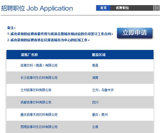 第一步:進(jìn)入百事可樂校園招聘的網(wǎng)申界面,然后點(diǎn)擊“立即申請”按鈕