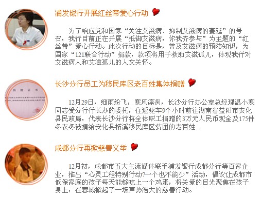 建行以來(lái),我行一直提倡實(shí)現(xiàn)“社會(huì)價(jià)值、股東價(jià)值、員工價(jià)值的三個(gè)統(tǒng)一”文化理念,而"奉獻(xiàn)愛心、關(guān)愛社會(huì)"正是我行實(shí)現(xiàn)社會(huì)價(jià)值的積極體現(xiàn),也是我行承擔(dān)企業(yè)社會(huì)責(zé)任、作為企業(yè)社會(huì)公民應(yīng)盡的義務(wù)。我們也希望能有更多的企業(yè)、更多的人來(lái)關(guān)心那些急需幫助的人群,一起維護(hù)和增進(jìn)社會(huì)利益,促進(jìn)社會(huì)進(jìn)步。 奉獻(xiàn)愛心,關(guān)愛社會(huì),讓愛心成為我們每一個(gè)人心靈深處的一盞常明燈,予人玫瑰,手留余香。