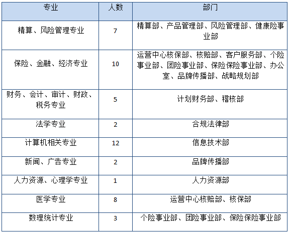1、精算、風(fēng)險管理相關(guān)專業(yè),碩士研究生學(xué)歷,學(xué)習(xí)成績良好,英語通過 CET-6;