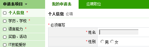 公司自己的網(wǎng)站有專門的申請(qǐng)地址。如果說上一類申請(qǐng)表格是通過格式的話,那么這一類的針對(duì)性就更強(qiáng)了。每個(gè)公司的申請(qǐng)表格都是經(jīng)過精心設(shè)計(jì)的,符合他們所需要尋找的未來員工的重要的指標(biāo)。例如GE,它的網(wǎng)上申請(qǐng)的表格是十分完善的,填寫的步驟也很復(fù)雜。需要的注意的問題有:一,申請(qǐng)職位的填寫要特別慎重,雖然很多公司的職位選擇都是可以復(fù)選的,但是當(dāng)心,這很有可能成為面試的話題。當(dāng)你同時(shí)選擇了比如人力資源和高分子材料工程師兩個(gè)職位時(shí),除非你有充分的理由讓HR相信你同時(shí)具備這兩個(gè)職位所要求的能力,否則只會(huì)給人“亂投醫(yī)”的感覺。其次,注意你的申請(qǐng)資料的填寫和你所申請(qǐng)職位的匹配。需要特別強(qiáng)調(diào)的實(shí)習(xí)經(jīng)歷和專業(yè)技能,要著重地強(qiáng)調(diào),和前一種一樣,盡可能的覆蓋那些重要的關(guān)鍵字。