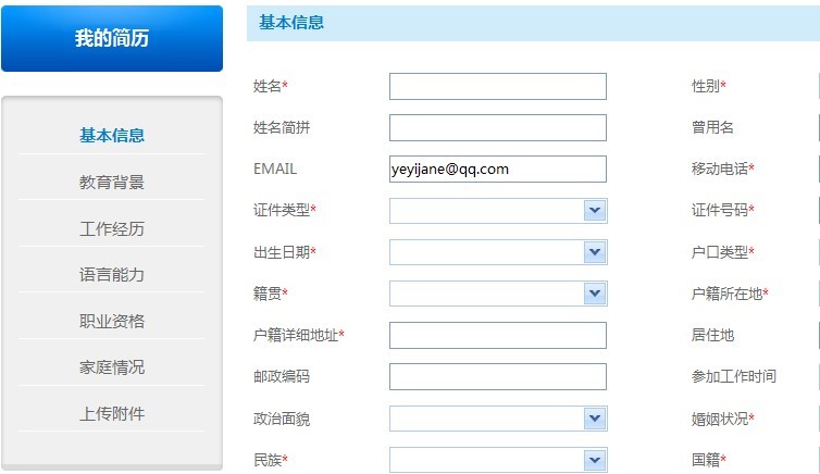 簡(jiǎn)歷申請(qǐng)表分為幾個(gè)部分,建議您一定要填寫的詳細(xì)些,如果沒(méi)有準(zhǔn)備好,就先不要提交申請(qǐng)表,等到全部填寫準(zhǔn)確后再提交;
