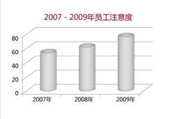 我們開(kāi)展了"2009年度員工滿(mǎn)意度調(diào)查",調(diào)查匿名進(jìn)行,問(wèn)卷調(diào)查共回收有效問(wèn)卷759份,員工滿(mǎn)意度逐年上升。
